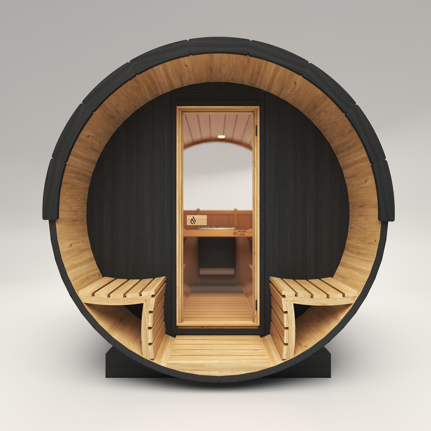 The exterior Nordic Spruce delivers lasting weather resistance and architectural appeal, while Thermo Aspen benches enhance airflow and comfort. Both timbers are thermally modified through a chemical-free heat and steam process, ensuring eco-friendly strength, stability, and moisture resistance.