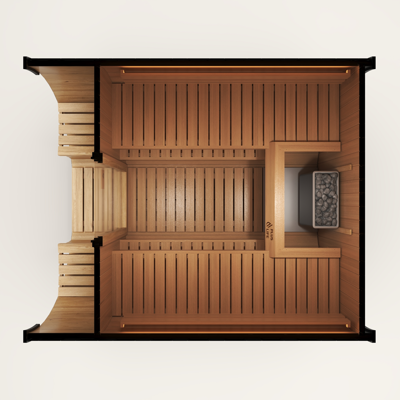 Integrated LED ambient lighting with premium Wi-Fi switch control allows you to set the perfect mood with ease. Thoughtfully positioned and softly diffused, the warm LED illumination enhances the natural beauty of the timber and creates a calming atmosphere that complements, rather than overpowers, the sauna experience. Every detail has been perfected to deliver balance, serenity, and a sense of timeless warmth.